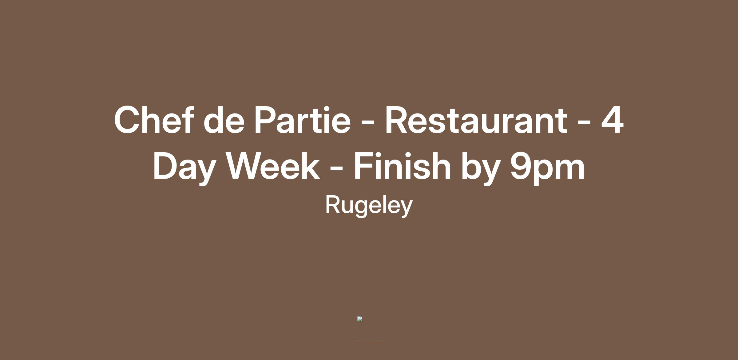 WORK LIFE BALANCE ALERT!!! A Chef de Partie is required for a really warm, friendly, relaxed fresh food restaurant near Rugeley. Work life balance perks include – 4 day week – finish no later than 9pm – 40 hours per week and anything over 40 hours you will get paid overtime.