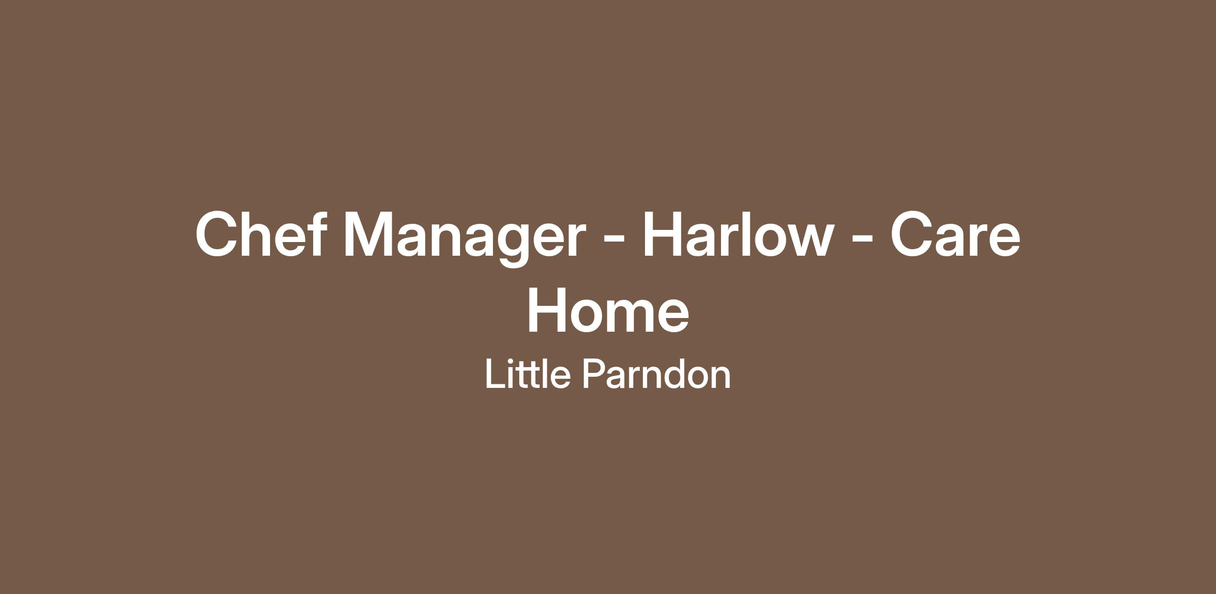Chef Manager - Harlow - Care Home