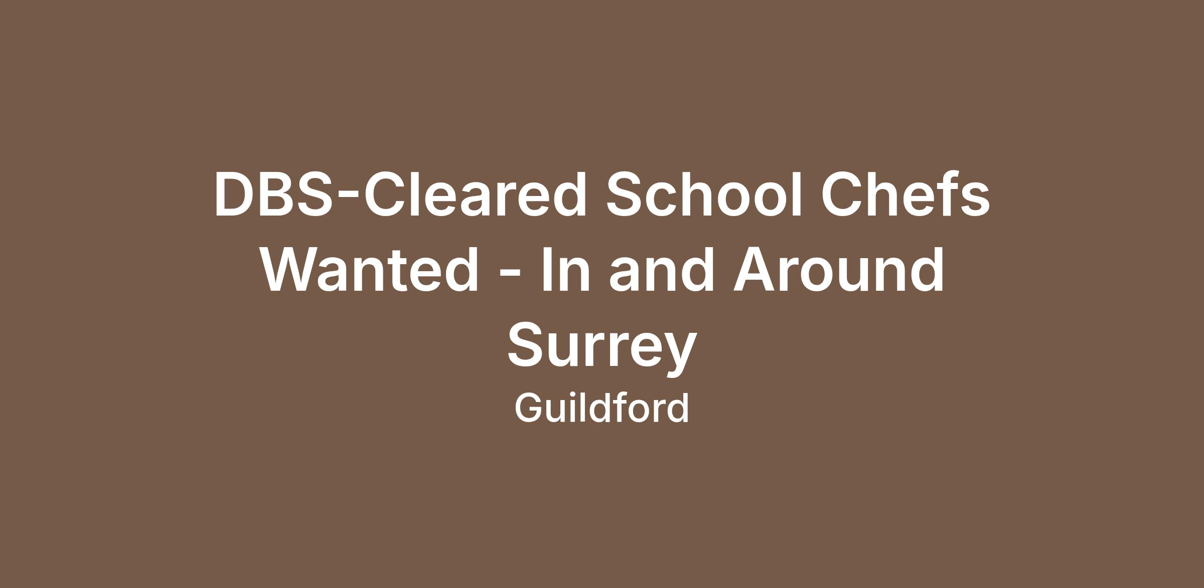 DBS-Cleared School Chefs Wanted - In and Around Surrey