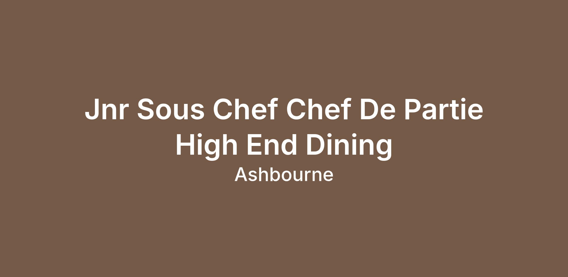 Jnr Sous Chef, Chef De Partie