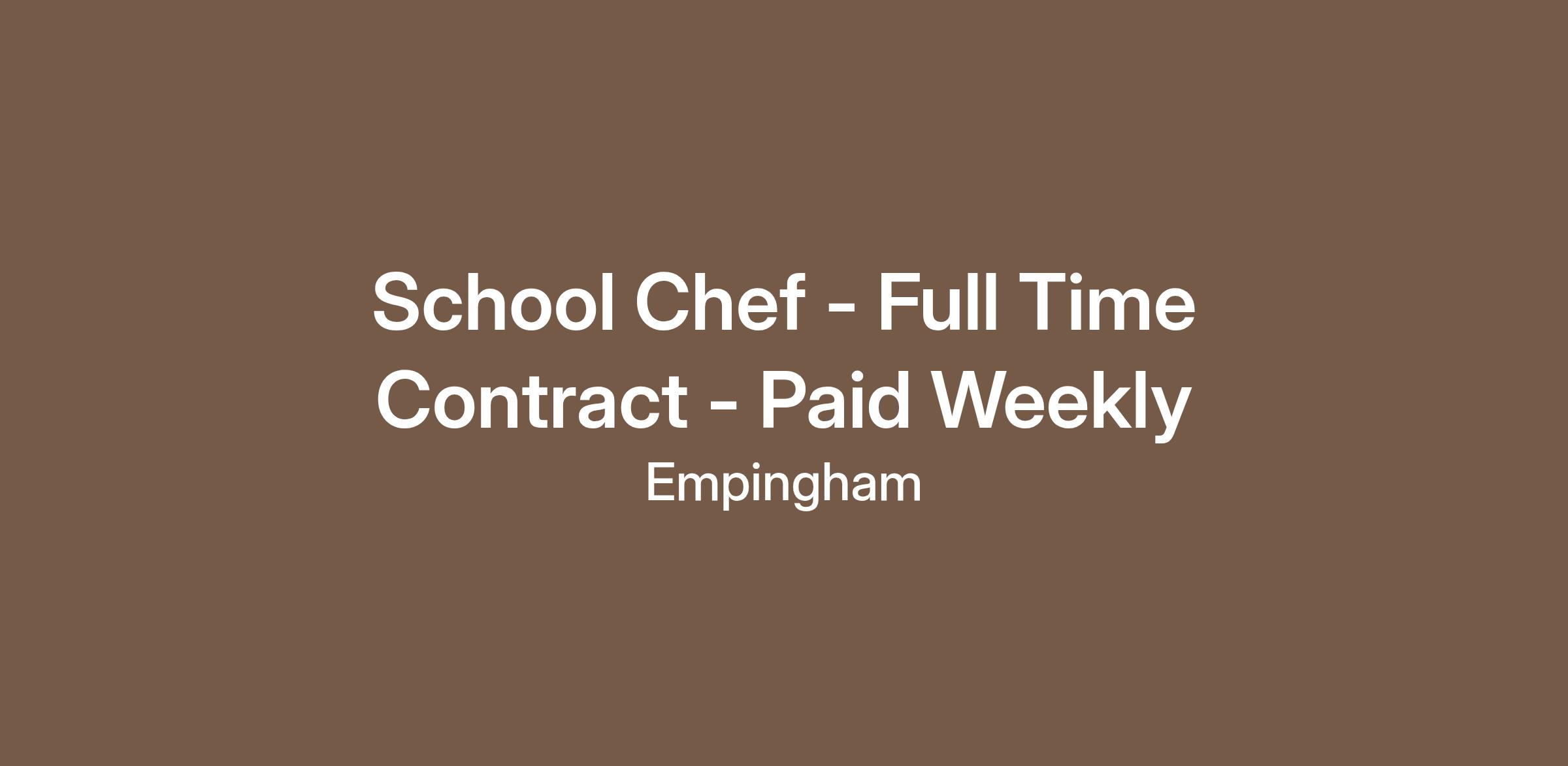 School Chef - Full Time Contract - Paid Weekly