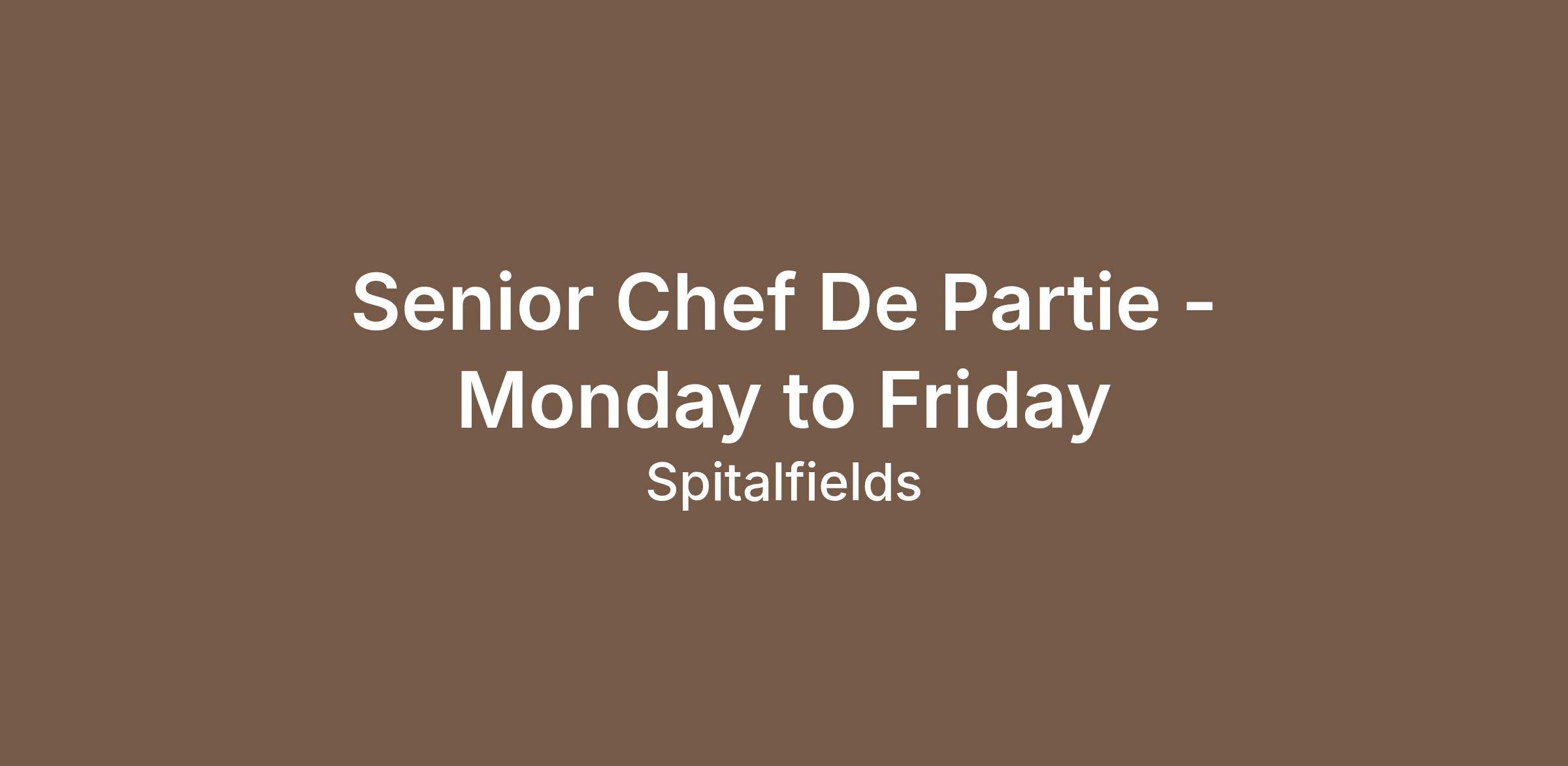Retail Senior Chef de Partie | Monday to Friday