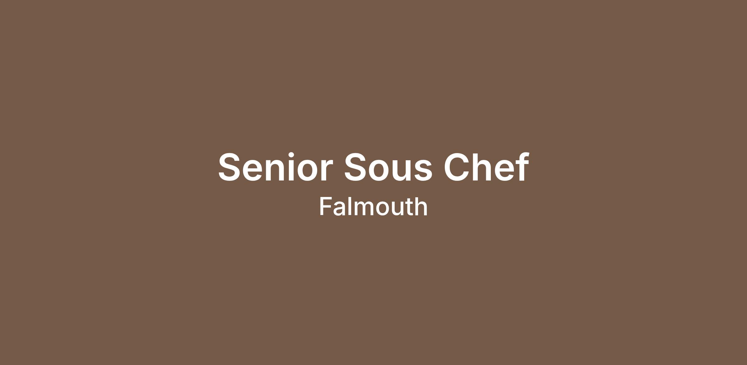 Senior Sous Chef position available in a large hotel in Falmouth.